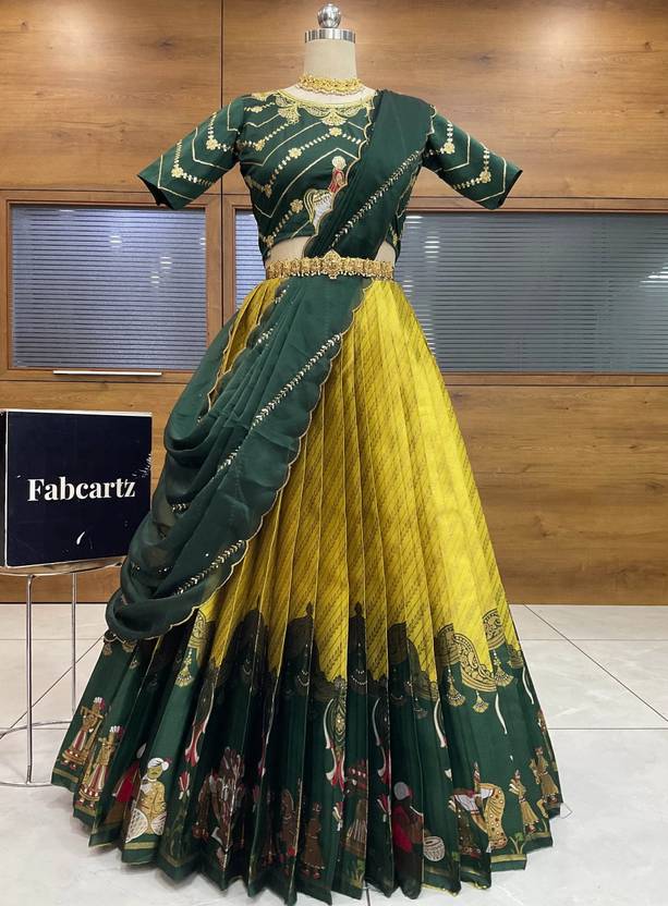 Fabric:- Lehenga Fabric : Litchi Silk zari work Choli Fabric: Tapeta Satin Dupatta Fabric: Rangoli Silk Pattern:- Lehenga:-Solid With Woven Blouse:- Embroidery Work Stitch type Lehenga is unstitched Choli is unstitched Length : Lehenga 3.75 M (Unstitched) Blouse 1.0 M (Unstitched ) (Blouse Pattern : Embroidery work) Dupatta 2.40 M Ready To Ship.