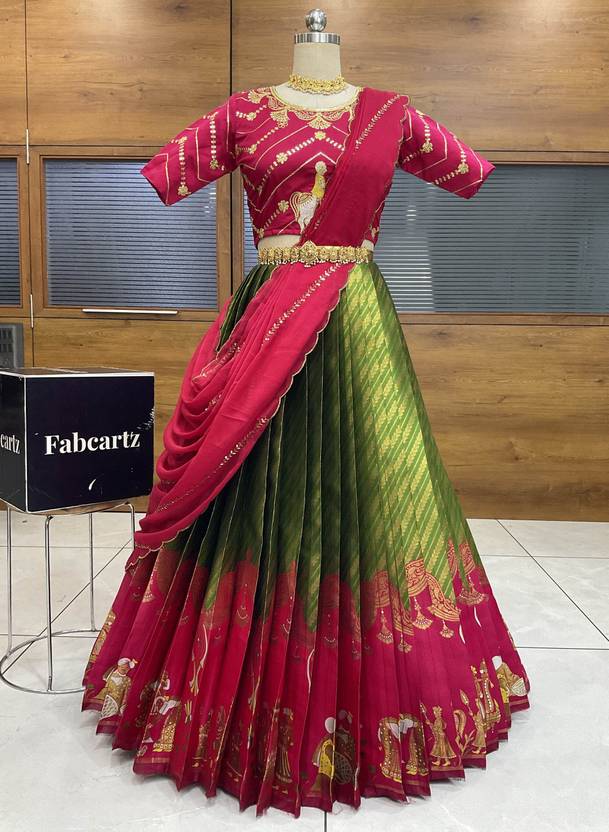 Fabric:- Lehenga Fabric : Litchi Silk zari work Choli Fabric: Tapeta Satin Dupatta Fabric: Rangoli Silk Pattern:- Lehenga:-Solid With Woven Blouse:- Embroidery Work Stitch type Lehenga is unstitched Choli is unstitched Length : Lehenga 3.75 M (Unstitched) Blouse 1.0 M (Unstitched ) (Blouse Pattern : Embroidery work) Dupatta 2.40 M Ready To Ship.