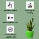 8 Inch big Plastic pots are best for Home, Office Indoor and Outdoor Flower Plants. These attractive plastic pots have strong build quality with UV plus protection coat, which makes them weather resistant and suitable to use in balcony, terrace and outdoor garden.