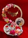 Mridang Customize Engagement Ring platter with beautiful Floral work Wood Decorative Platter (Multicolor)