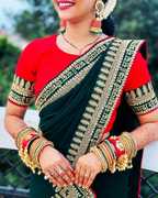 Mrs Fab Embroidered Daily Wear Georgette Saree (Green)
