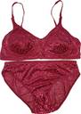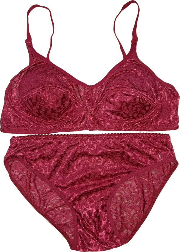 Mrs Queen Bra & Panty Set Self Design Maroon Lingerie Set