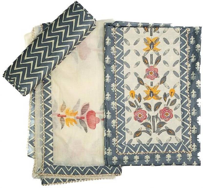 Redefine your ethnic wardrobe with the Mrunmayee Women's Unstitched Suit Fabric Set. Made from breathable cotton, the set includes a beautifully embroidered top fabric, a plain yet complementing bottom fabric, and a lightweight, stylish Kota Doria dupatta. This versatile 3-piece set is ideal for all occasions—whether it's festive celebrations, casual get-togethers, or daily wear. The high-quality fabric allows for easy customization into your preferred fit and style.