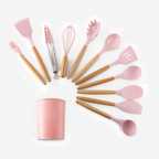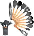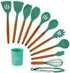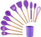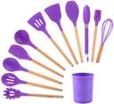 MS MODSTYLE Wooden Handle Silicone Coking Spoon Set Kitchen Tool Set (Purple, Brush, Spatula, Whisk, Skimmer, Ladle)