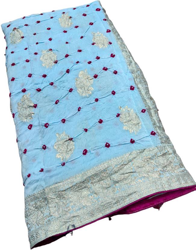 Woven, Self Design Bandhani Art Silk, Silk Blend Saree (Light Blue)