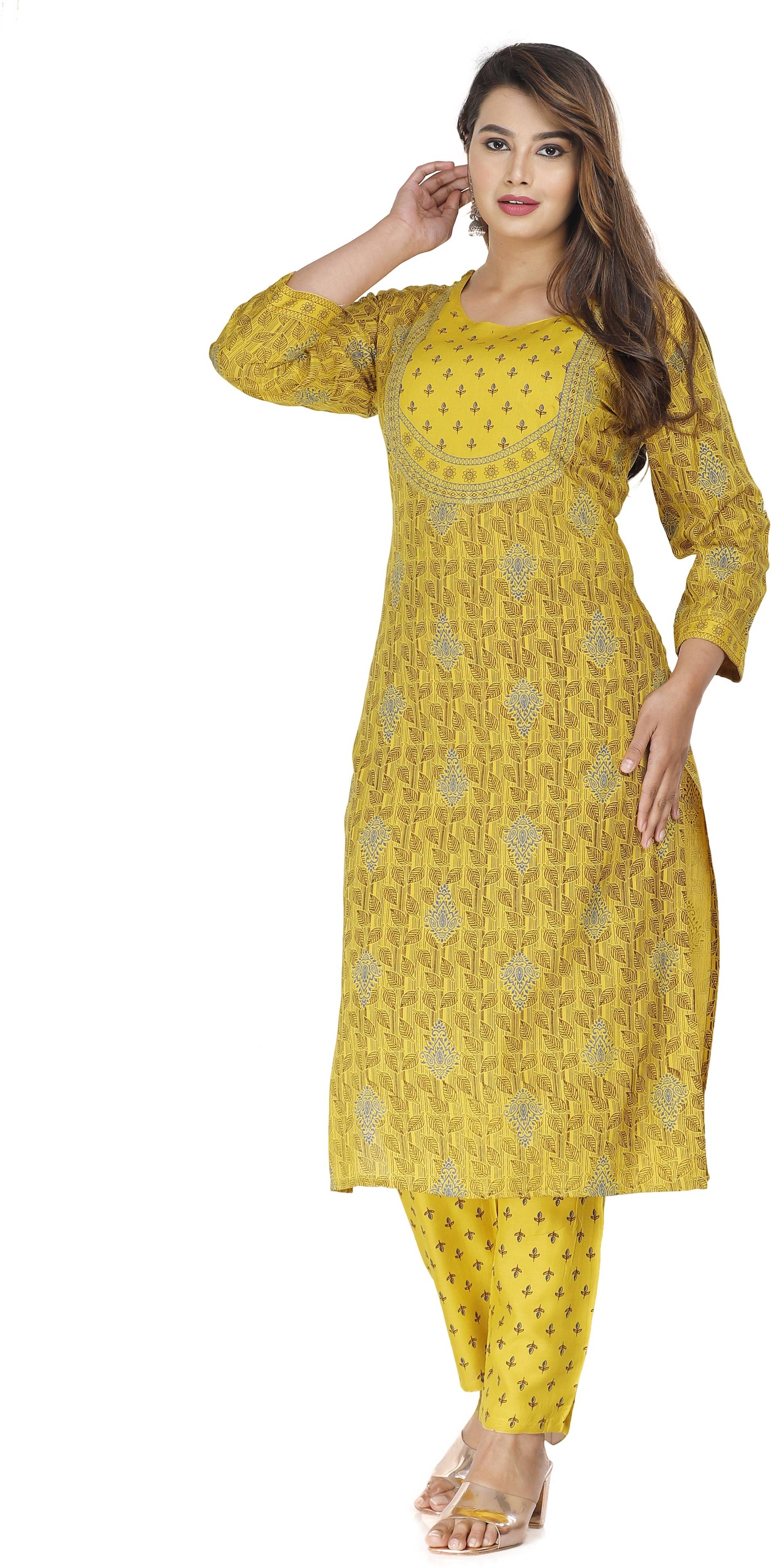 MSENTERPRISES Women Solid Straight Kurta (Yellow)