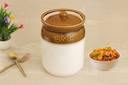 4 KG Ceramic Pickle Achar Jar Martaan Handmade For Home & Kitchen White & Brown.Can Use For Store Achaar,Honey,oil,sirca,chutney,sause etc.It Keeps Your Achaar/Pickle Fresh For Many Months
