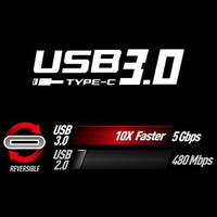 The USB 3.0 Type-C SuperSpeed transfer mode supports up to 5 Gbps transfer speed, which is ten times faster than the standard USB 2.0. This USB 3.0 is backwards compatible with USB 2.0.