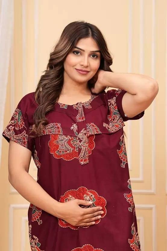 Name : Soft Maternity Feeding Nighties – Perfect for a Relaxing Night's Sleep : Fabric : Cotton : Sleeve Length : Short Sleeves : Pattern : Printed : Net Quantity (N) : 1 : Sizes : L (Bust Size : 40 in, Length Size: 55 in) : XL (Bust Size : 40 in, Length Size: 55 in) : XXL (Bust Size : 40 in, Length Size: 55 in) : Free Size (Bust Size : 40 in, Length Size: 55 in) : Upgrade your sleepwear collection with our range of soft and breathable nighties, designed for comfort and style. Made from premium fabrics, these nighties are gentle on the skin, ensuring a peaceful and cozy night's sleep. Whether you're looking for something elegant, simple, or trendy, our collection offers a variety of styles, colors, and sizes to suit your preferences. Country of Origin : India