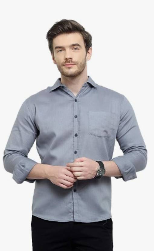Men Regular Fit Solid Spread Collar Casual Shirt