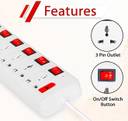 MSNL Ms New Ext-7+7, protector power up 6amp, 3mtr long wire and, 7 switch 7 Socket Extension Boards (White, Red, 3 m)