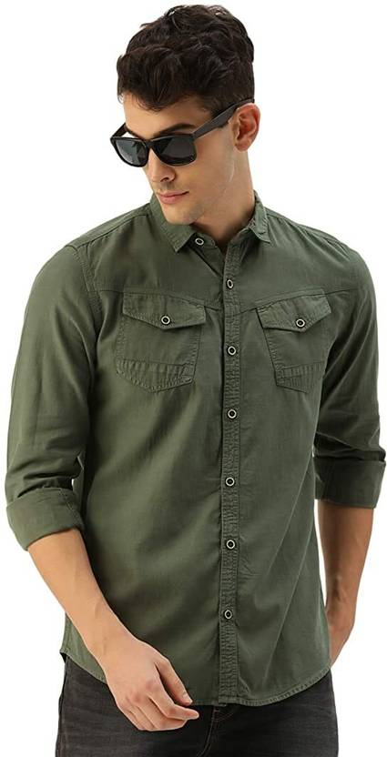 Men Regular Fit Solid Spread Collar Casual Shirt