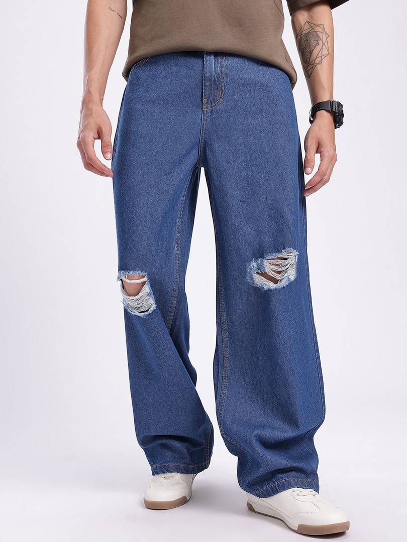 MSV Printed Men V Neck Blue T-Shirt
