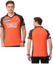 Men Printed, Typography Polo Neck Polyester Orange T-Shirt