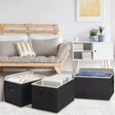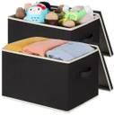 Mteaser 2 Pieces Non Woven Large Storage Basket/Bins with Lids & Handles for Cloth, Toys Storage Box (Black)