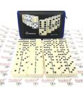 A heavy plastic of the domino tile makes the process of mixing the domino easy and fun. The tiles knock each other while turning and mixing. The domino tiles are numbered on a standard system with 1-6 recessed dots on each end. Some ends are blank. The domino tile size is 0.39 x 1 x 1.97 inches. It is a typical double-6 table domino game. The tiles are a little bit smaller and lighter than authentic Jamaican dominoes. The domino are packed in a retro style reusable domino box. The size of the domino tin box is 11 cm L × 3 cm W × 19 cm H. This classic table game consists of 28 domino tiles and is for 2-4 players. The tin storage case makes it easy to take the domino when traveling. This classic set features domino with engraved Black dots for each number, making it simple for kids to build math skills as they match up Black and quantities! Plus, the durable domino fit snugly in a tin box for easy storage. The domino are packed in a retro style reusable domino box. The size of the domino tin box is 11 cm Length × 3 cm Wight × 19 cm Height . Game includes 28 domino. For 2-4 players.