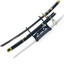 This is actually roronoa zoro yubashiri sword from the world famous Japanese Anime series in durable polyurethane foam. The blade has been shaped just like a traditional katana with a finish. The metal handle is with a blade strip and red design in the center and featured on both sides ,