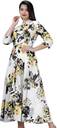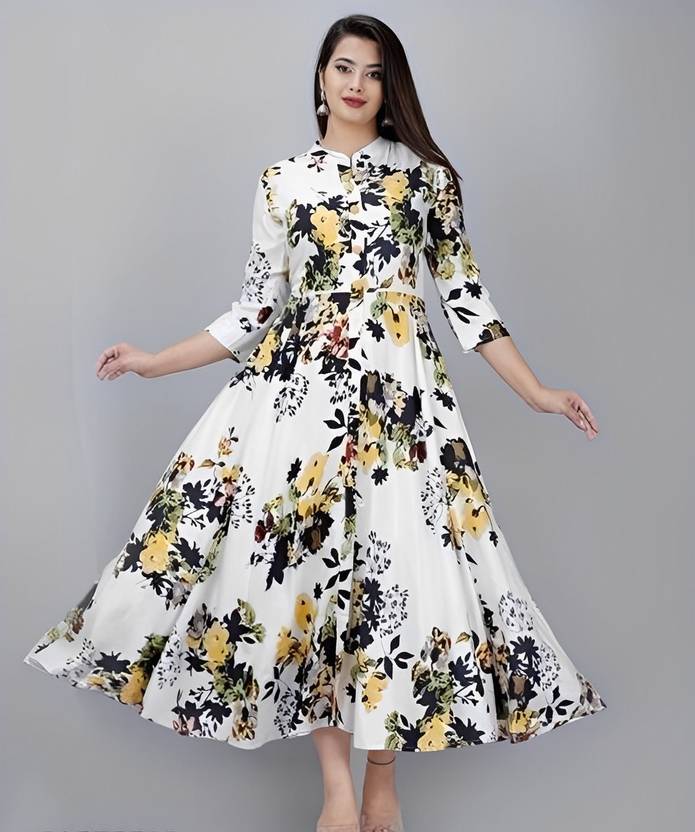 Printed Rayon Blend Stitched Flared/A-line Gown (White)