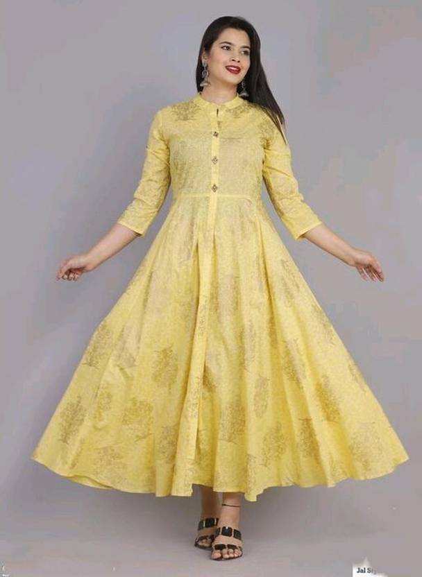 Printed Viscose Rayon Stitched Anarkali Gown (Yellow)