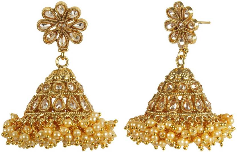 Muchmore 22k Gold Plated South Indian Style Polki Earrings for Women Alloy Jhumki Earring