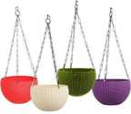 Muddstyles Multicolor Hanging Rattan Woven Plastic Flower Hanging Planter/Beautiful Round Gamla Pot/Flower Hanging Pot For Garden Balcony (Multicolor, Pack of 4)