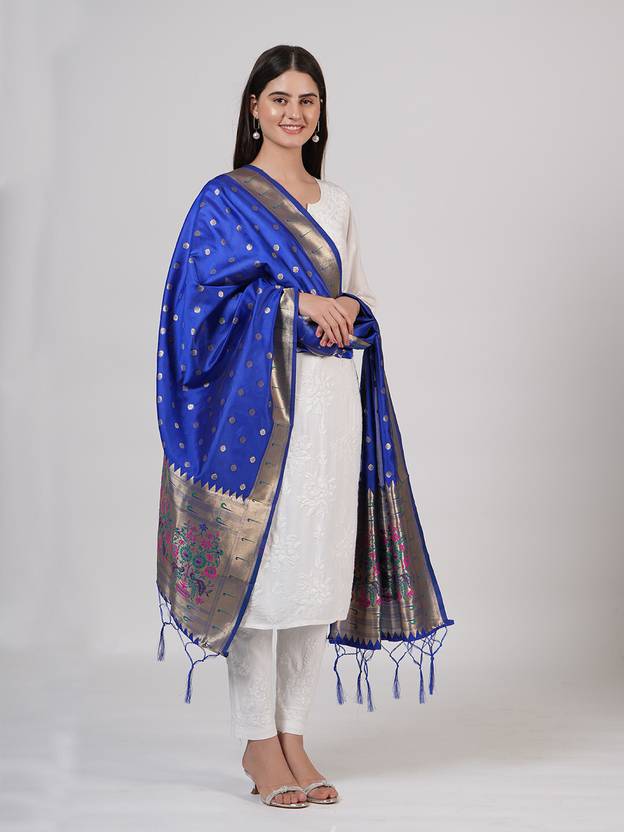 MUFFLY Pure Silk Woven Women Dupatta