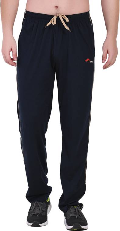 Make a sleek addition to your wardrobe with these slim and Regular-fit track pants by Muffy. Styled on poly-cotton fabric, your skin will experience immense breathability and comfort in these track pants. It features a flat front, 2 pockets and elasticated drawstring waistband pockets for increased utility. The flaunt panel detailing and the logo makes it a voguish choice. Team them with a t-shirt and sneakers for a finished edit.
