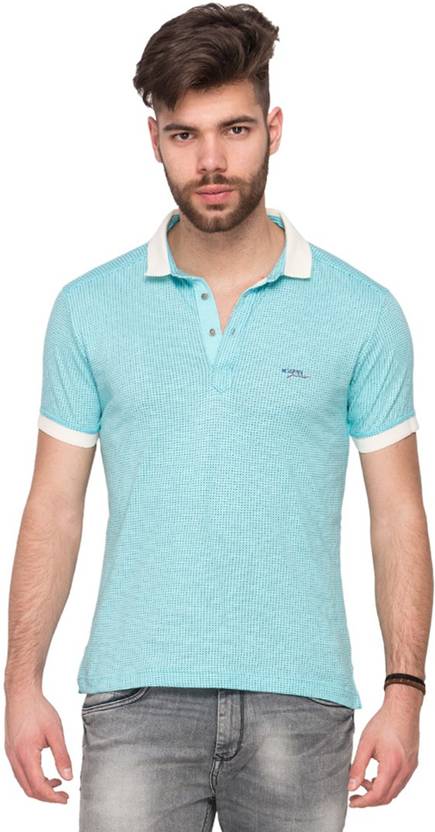 MUFTI Mfk-510208-Sky Men Checkered Polo Neck Cotton Blend Blue T-Shirt