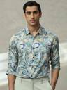 MUFTI Men Printed Casual Blue Shirt