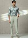 Teal Leaf Print Slim Fit Casual Shirt