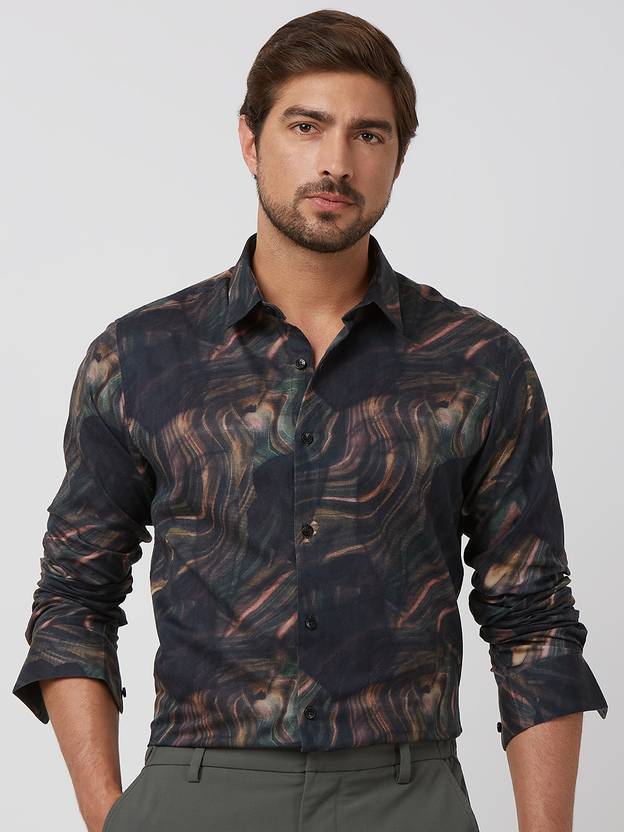 Men Slim Fit Printed Spread Collar Casual Shirt