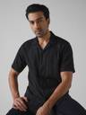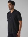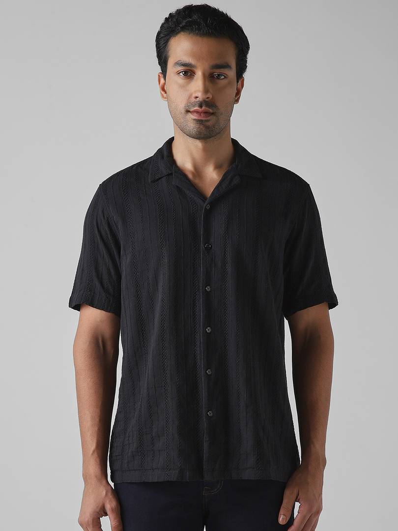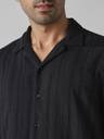 Black Textured Plain Relaxed Fit Casual Shirt