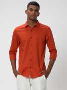 MUFTI Men Slim Fit Solid Spread Collar Casual Shirt