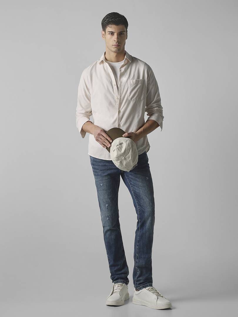 Men Slim Fit Solid Spread Collar Casual Shirt