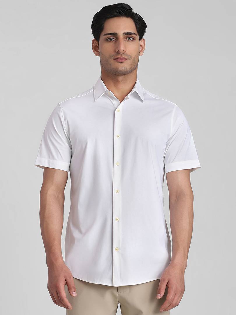 White Scuba Stretch Plain Slim Fit Casual Shirt