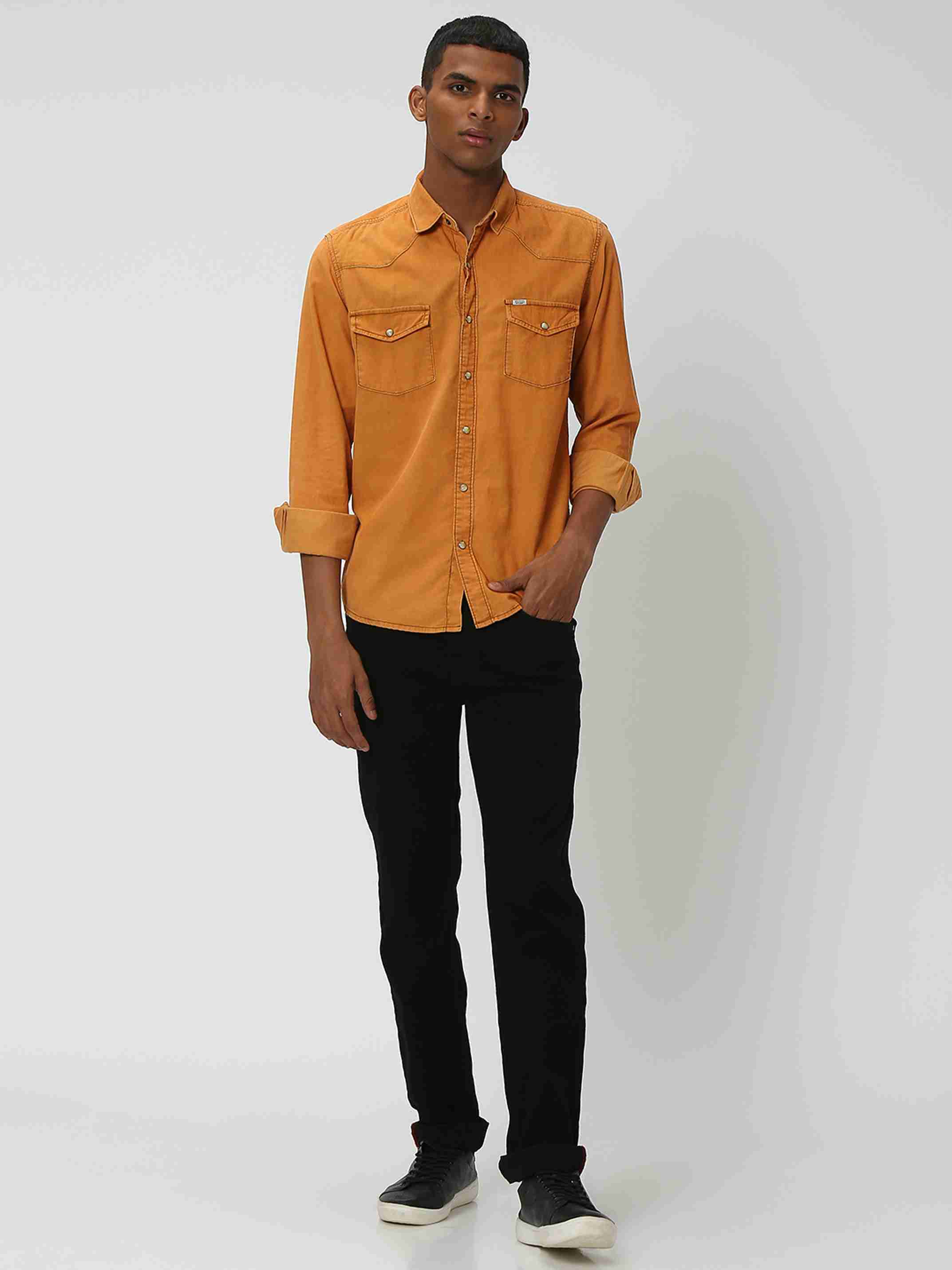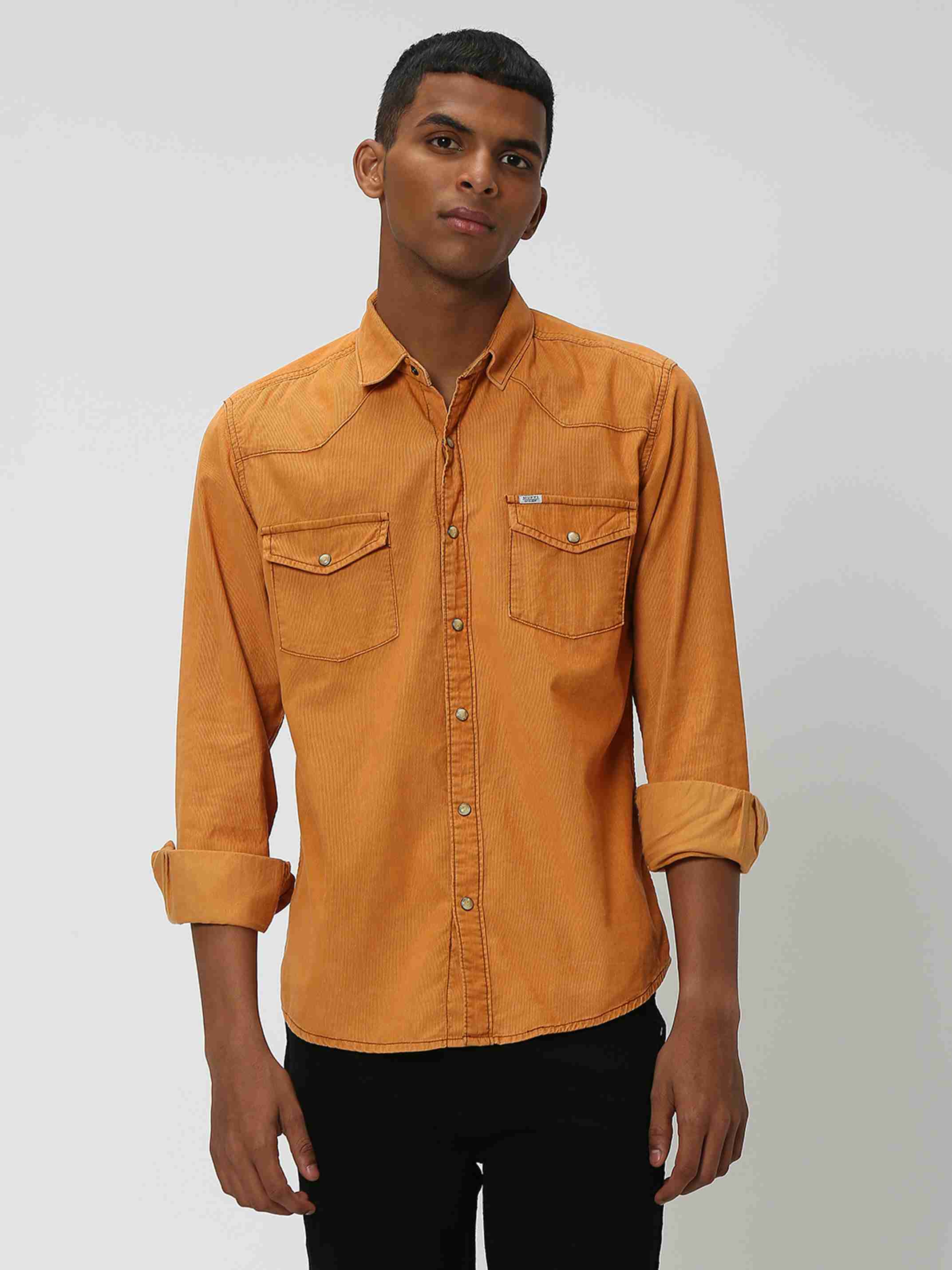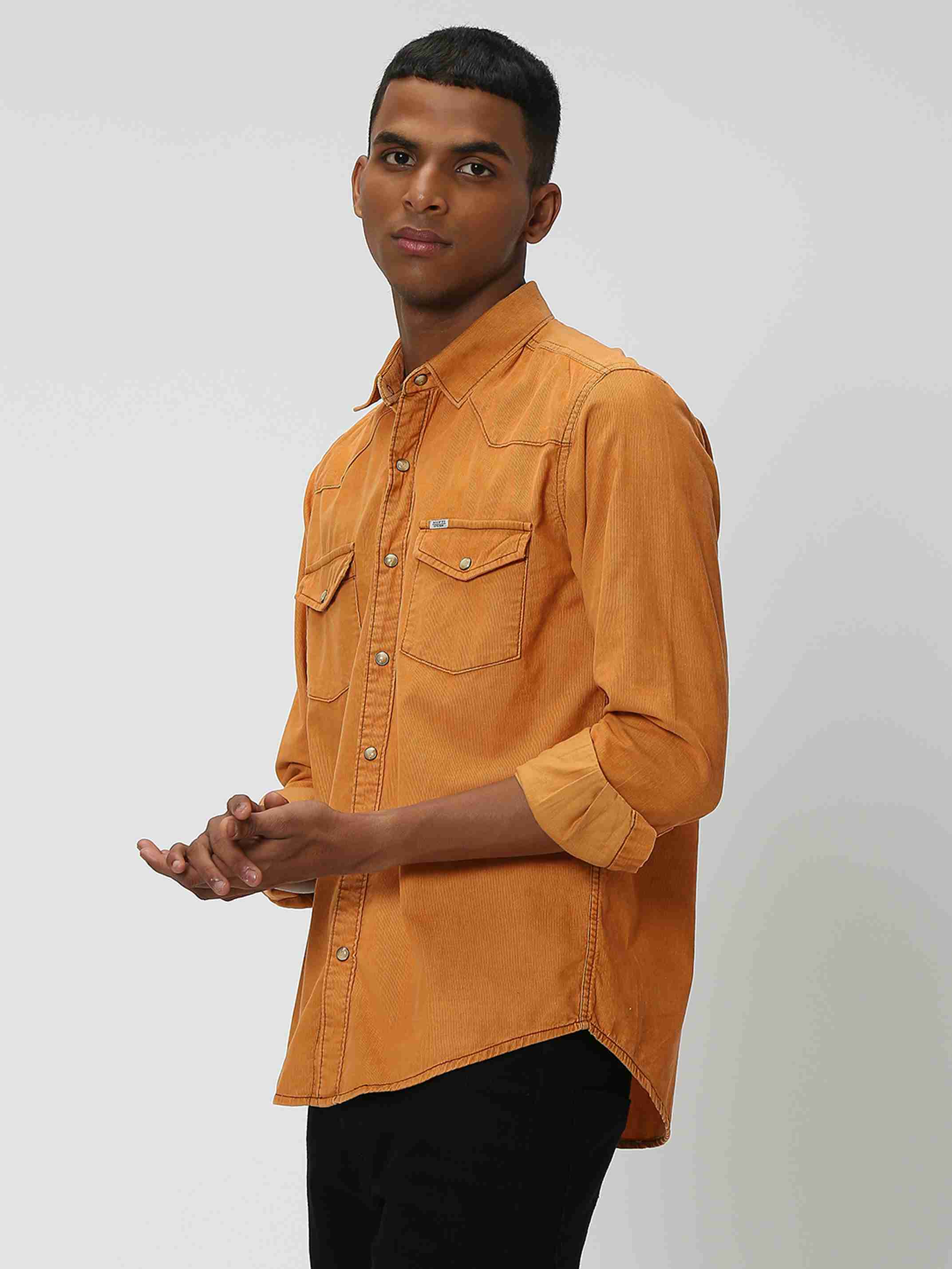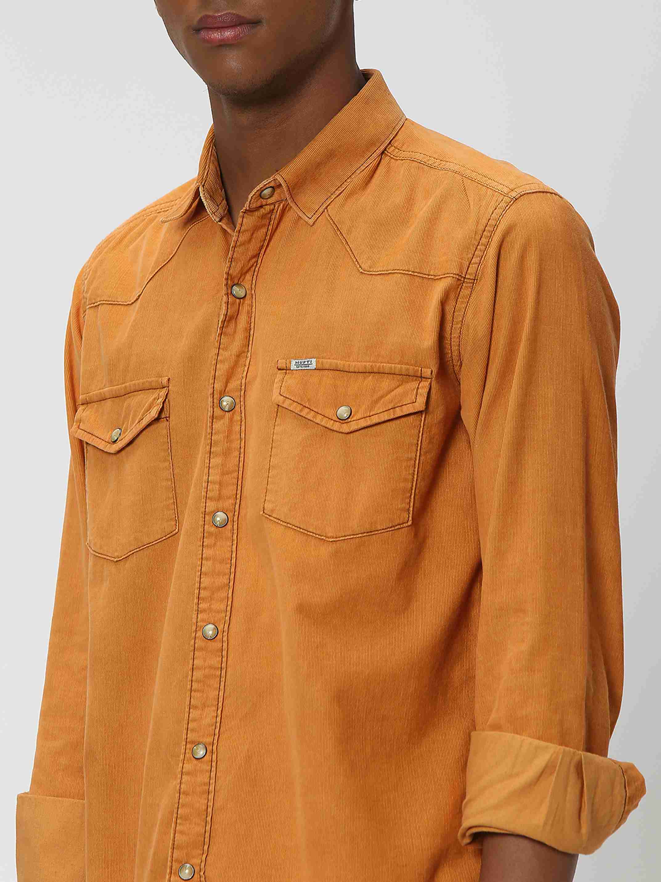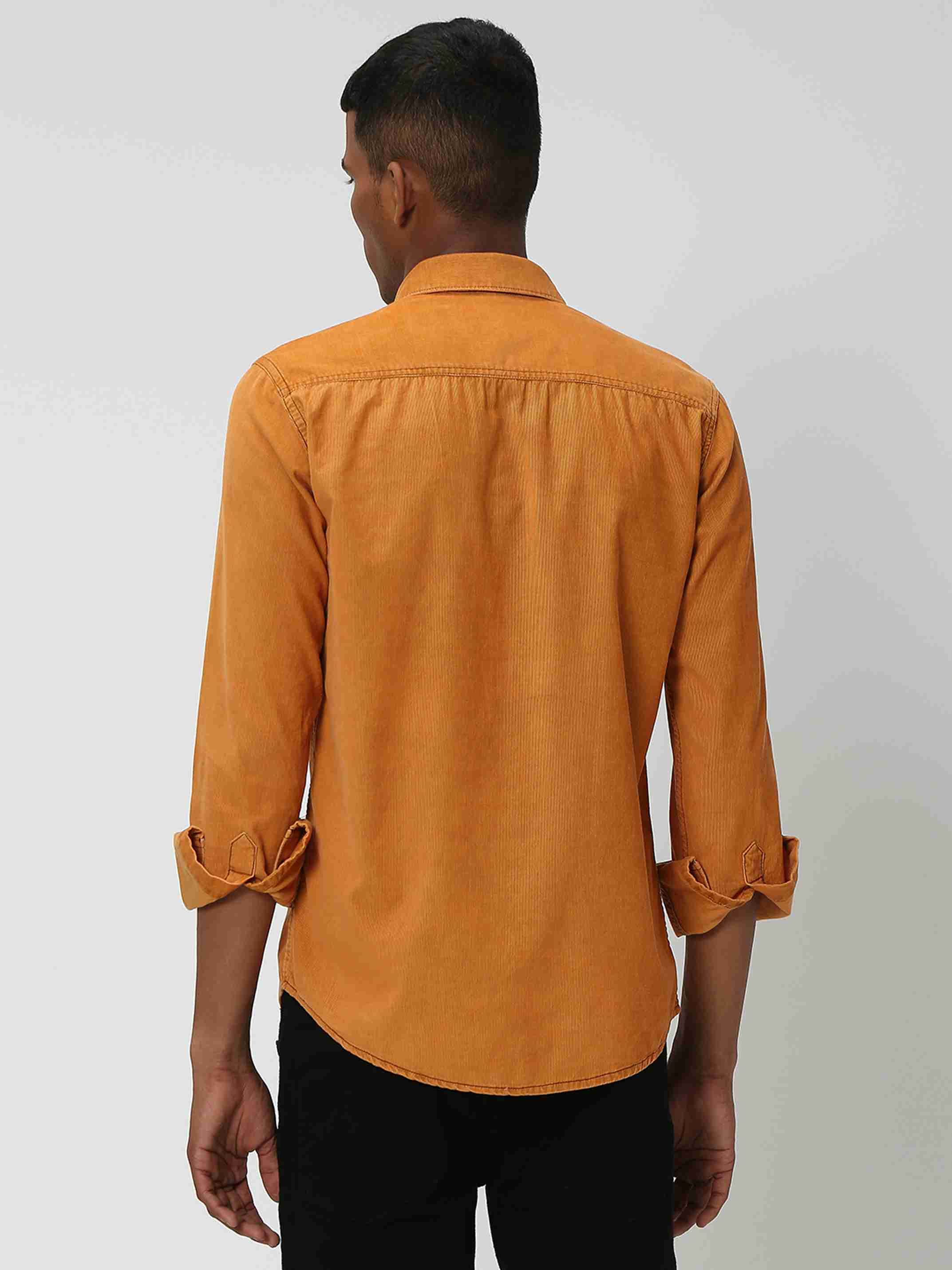 Mustard Textured Plain Corduroy Shirt In Cotton
