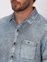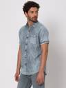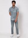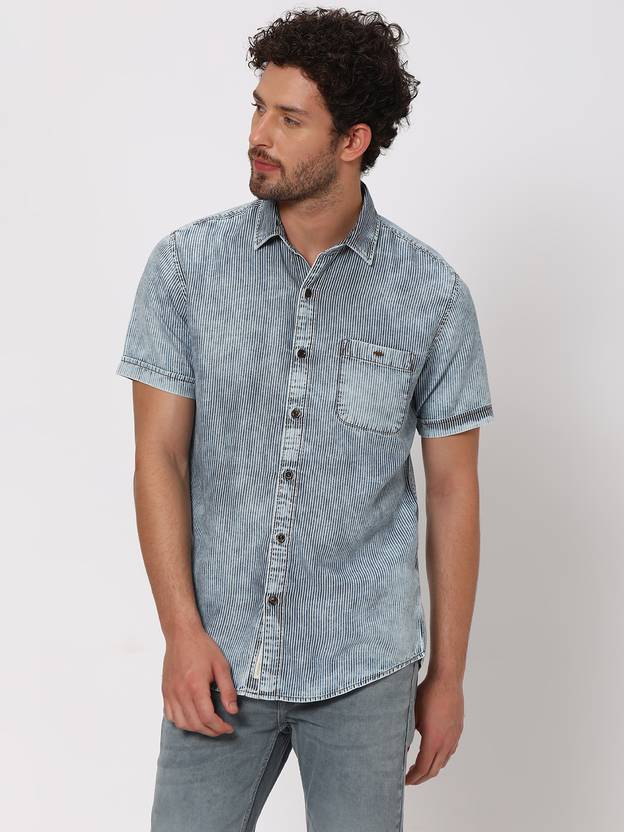 Iced Light Blue Authentic Pin Stripe Denim Half Sleeve Casual Shirt In Tencel