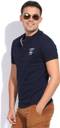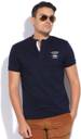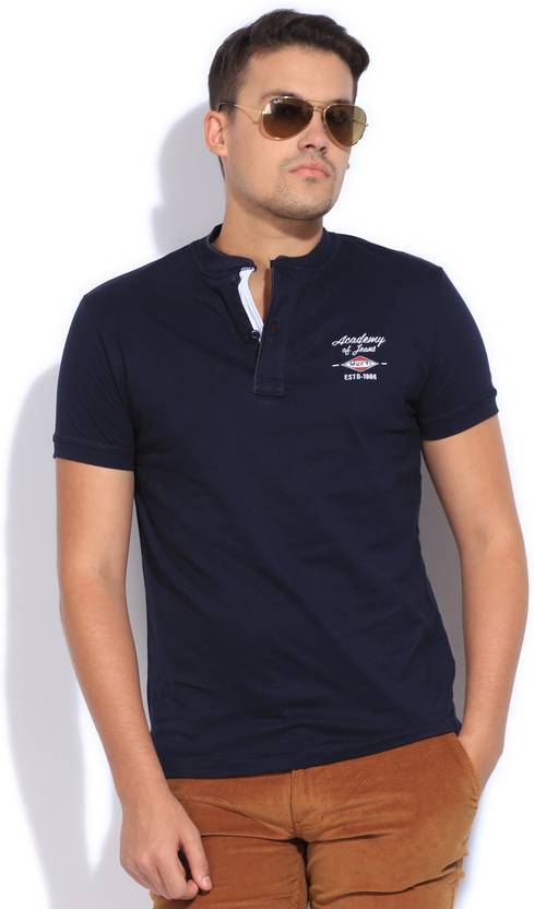 MUFTI Men Solid Henley Neck Cotton Blend Dark Blue T-Shirt