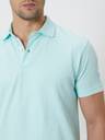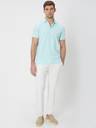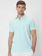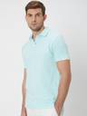 Turquoise Textured Plain Slim Fit Textured Jersey Polo T-Shirt In Cotton Stretch