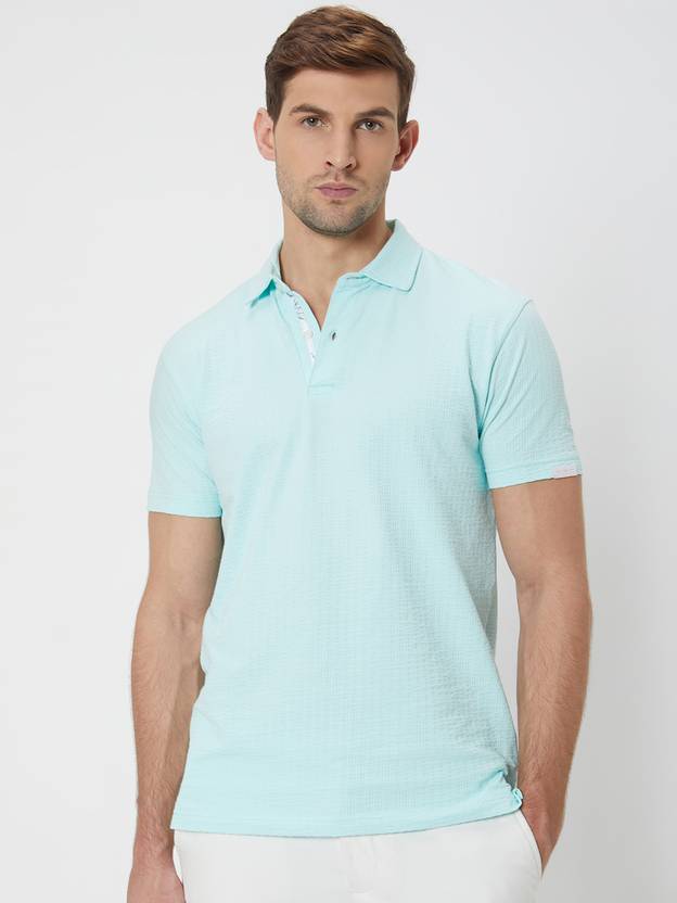MUFTI Solid Men Polo Neck Blue T-Shirt