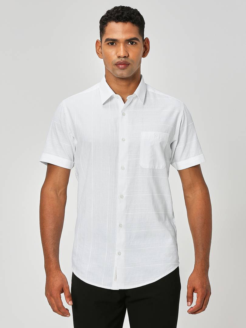 White Textured Plain Slim Fit T-Shirt