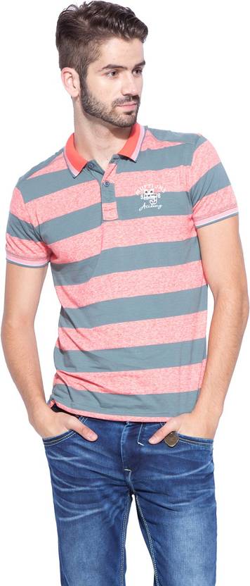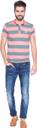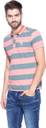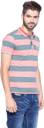 MUFTI Men Striped Polo Neck Cotton Blend Pink, Grey T-Shirt
