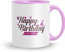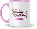 MUGKIN Special Happy Birthday Printed Inner&Handle Pink Coloured Ceramic (Pink-31) Ceramic Coffee Mug (350 ml)