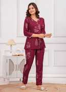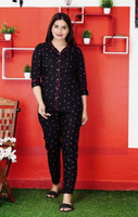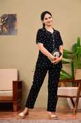 Made from high-quality rayon, this night suit is soft and breathable, ensuring a comfortable night's sleep. The rayon fabric feels gentle against your skin, reducing irritation and keeping you cool throughout the night. This makes it an excellent choice for those who value comfort and quality in their sleepwear. You can envision slipping into this night suit after a warm bath, the soft rayon fabric enveloping you in comfort, helping you relax and unwind effortlessly.