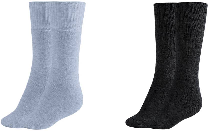 Men Winter Woolen Warm Solid Grey + Dark Grey Calf Crew Length Socks Moja Jurab