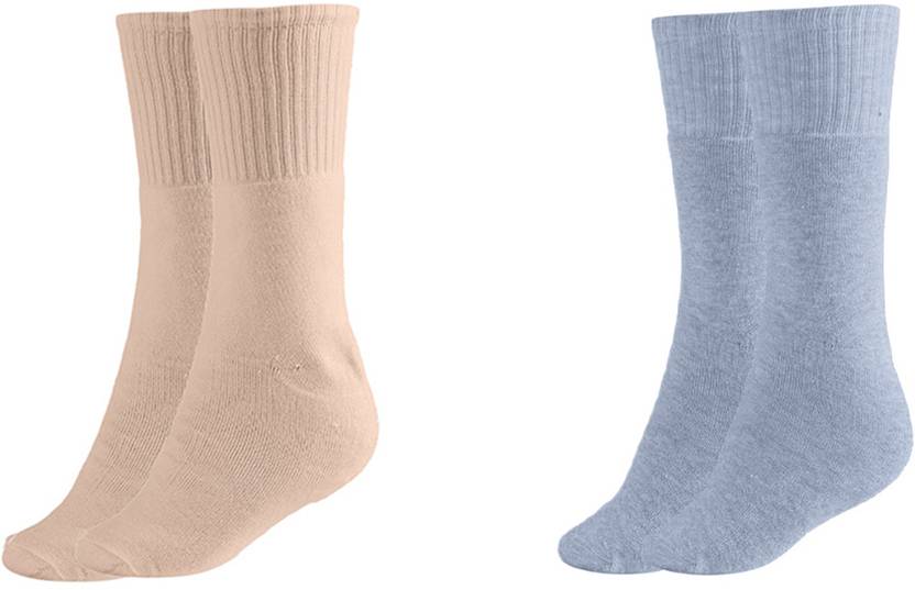 Men Winter Woolen Warm Beige + Solid Grey Calf Crew Length Socks Moja Jurab