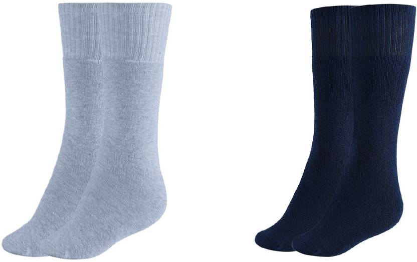 Men Winter Woolen Warm Solid Grey + Navy Blue Calf Crew Length Socks Moja Jurab
