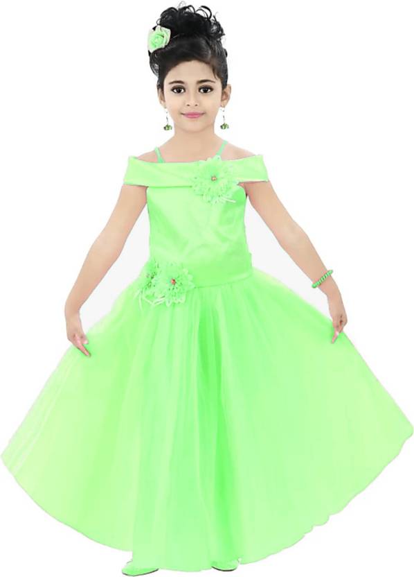 Mulllick the designer Girls Maxi/Full Length Party Dress (Green, Sleeveless)