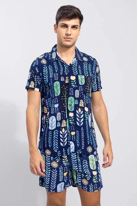 mens night dress Tie & Dye Lounge Sets are the right combination of our Super Soft Printed Shirts and Comfy Printed Shorts. Perfectly suited for casually relaxing at home, moving out to Club or for parties. Premium Neo Indian Fit No matter what you wear during the day or what is the comfort level of your trendy garments, when you are on your bed, you need complete physical comfort that only sleepwear can offer men’s sleepwear