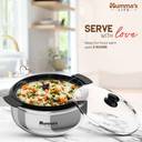Charm your guests by serving them hot portions of rice, roti, meat or vegetables with the handy and alluring Stainless Steel Casserole with Glass Lid. Made using chemical-free and high quality plastic and stainless steel, the insulated stainless steel on this casserole can keep food hot and fresh for a long time. The transparent glass lid is easy to open and close and offers the convenience of viewing the food inside. This casserole is lightweight, durable and affordable, thus making it an essential add-on to your kitchen cabinet. The Stainless Steel Casserole with Glass Lid comes in an exclusive and attractive design that elevates the look of your kitchen and dining room.